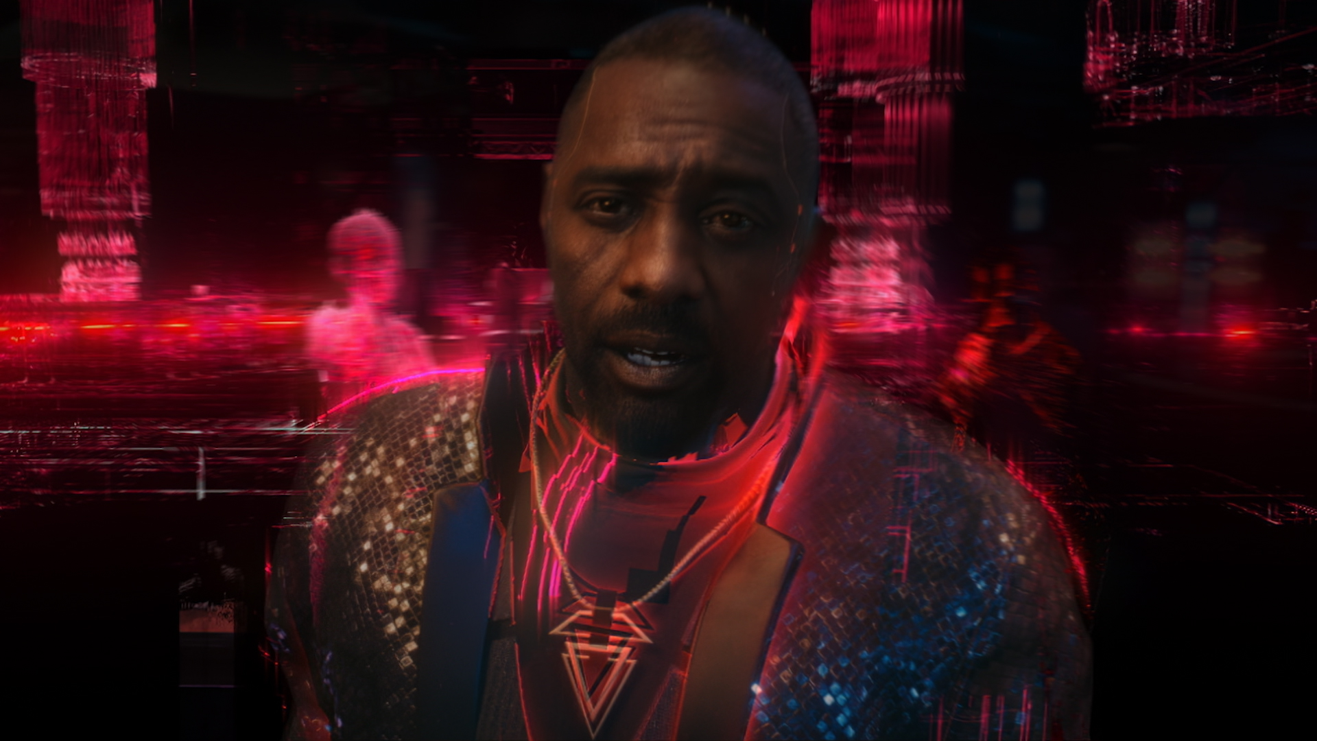 Once we’d landed on this line, we wrote out a monologue that used “the game is fixed” as a central noirish metaphor and evoked our “Seize the Day” trailer in tonality and approach, allowing Idris Elba to assume the mantle of franchise figurehead from Keanu Reeves. We set the scene in a Night City bar, dropping our recognizable superstar in the middle of the unreal visuals of the game. And then we let Idris do his thing, teasing audiences with tantalizing language about rigged games, unfair hands, and going all in. All of this footage was captured, tracked, and matched in a manner which allowed us to work closely with CDPR to bridge the gap between the world of the film and the world of the spot. We handled all post, VFX, design, animation, and support for the spot, including flawlessly weaving game assets into the final footage. And because they trusted us to do the franchise justice, they let us pick & choose the gameplay footage to incorporate into the final edit for maximum impact.